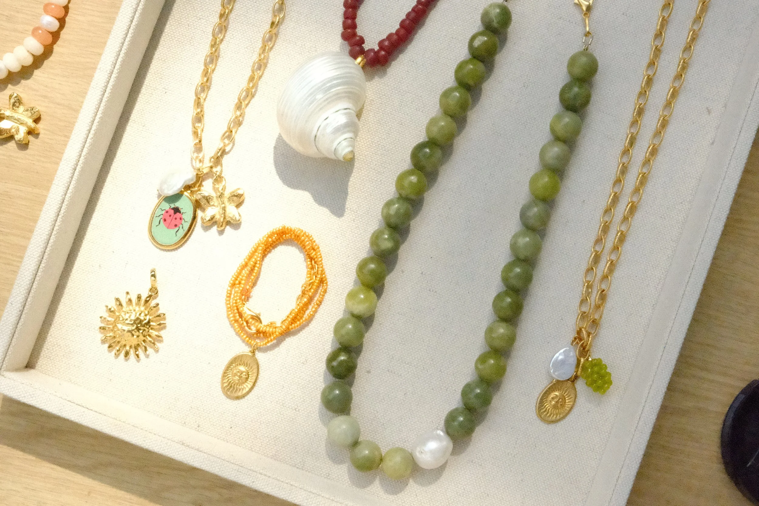 WELCOME TO OUR ONLINE STORE This oyster has a lot of pearls…..Pick a CATEGORY, fine tune with TAGS & you are golden. Categories: All GOLD SILVER GAME DAY BRIDAL ANKLET LEATHER BAG CHARMS All | GOLD | SILVER | GAME DAY | BRIDAL | ANKLET | LEATHER | BAG CHARMS | Quick View MYSTERY JEWLERY BOX $98.00 Quick View Chartreuse Gemstones $50.00 Quick View Vintage Grapes $50.00 Quick View Turbo Red $50.00 Quick View Fall Gemstone Girl $50.00 Quick View Stacking Baroque Necklace $35.00 Quick View Lady Bug $50.00 Quick View Golden Sun $60.00 Quick View Green Bubble $50.00 Quick View Stacking Cross Necklace $35.00 Quick View Green Scallop $25.00 Quick View Briley $75.00 Quick View Ruby Red from $40.00 Sale Quick View Ombré Heart $50.00 Quick View Chartreuse Hearts $50.00 Quick View Jewel $50.00 Quick View Strawberry Vine $45.00 Quick View Silver Star $60.00 Quick View Trucker Hat Sale Price: $30.00 Original Price: $38.00 Sale Quick View January $99.00 Quick View Starfish Stud $25.00 Quick View Silver Stevie $60.00 Quick View The Evelyn $38.00 Quick View Charlotte $75.00 Quick View Stevie $60.00 Quick View Chloe from $38.00 Quick View Scarlet from $43.00 Quick View Vivian from $50.00 Quick View Shoreline $75.00 Quick View Tea Time $38.00 Quick View Lady June $55.00 Quick View Single Elastic $25.00 Quick View Daydream Sale Price: $75.00 Original Price: $98.00 Sale Quick View Pearl Coin $148.00 Quick View Charmed by Spring $139.00 Quick View Garnet Charm Necklace $48.00 Quick View Purple Game Day Necklace $48.00 Quick View Vintage Garnet Rope Tie Necklace from $40.00 Quick View Orange and Purple Bag Charm Sale Price: $15.00 Original Price: $30.00 Sale Quick View Blue and Red Team Bag Charm Sale Price: $15.00 Original Price: $30.00 Sale Quick View Orange and White Bag Charm Sale Price: $15.00 Original Price: $30.00 Sale Quick View Powder Blue Rope Tie Necklace from $40.00 Quick View Orange and White Rope Tie Necklace from $40.00 Quick View Royal Blue & White Rope Tie Necklace from $40.00 Quick View Blueberry Baroque $175.00 Quick View Grape Baroque $175.00 Quick View Banana Baroque $175.00 Quick View Chery Baroque $175.00 Quick View Kiwi Baroque $175.00 Quick View Pineapple Baroque $175.00 Quick View Peach Baroque $175.00 Quick View Avacado Baroque $175.00 Quick View Coconut Baroque $175.00 Quick View Green Fish $58.00 Quick View Party Fish $35.00 Quick View Color Strands $38.00 Quick View Moissanite Emerald Necklace $198.00 Quick View Scallop $60.00 Quick View Periwinkle $65.00 Quick View English Tea $50.00 Quick View Sea Girl $60.00 Quick View The Humboldt $25.00 Quick View Call Me Jade $50.00 Quick View Gemstone Girl $80.00 Quick View Vera $35.00 Quick View Chinoiserie Hoops Sale Price: $50.00 Original Price: $60.00 Sale Quick View Golden Charm $60.00 Quick View Beach Crew Sale Price: $35.00 Original Price: $48.00 Sale Quick View Cream Cord $48.00 Quick View Navy Cord $48.00 Quick View Hampton Charm Bracelet Sale Price: $30.00 Original Price: $98.00 Sale Quick View Hampton Charm Necklace Sale Price: $40.00 Original Price: $139.00 Sale Quick View Ivory Elastic $50.00 Quick View Lilac Elastic $50.00 Quick View Ivory Anklet $60.00 Quick View Lilac Anklet $60.00 Quick View Lilac Necklace $98.00 Quick View Ivory Necklace $98.00 Quick View Tiny Tide Anklet $35.00 Quick View Petite Pearl Anklet $45.00 Quick View Golden Tide $50.00 Quick View Ariel $25.00 Quick View Tiny Tide Elastic $40.00 Quick View Summer Fish $60.00 Quick View Color Faith Necklace $60.00 Quick View Ginkgo $60.00 Quick View Dusk Sale Price: $40.00 Original Price: $60.00 Sold Out Quick View Blake Sale Price: $40.00 Original Price: $60.00 Sale Quick View Sunrise Sale Price: $40.00 Original Price: $60.00 Sold Out Quick View Summer Heirloom $50.00 Quick View Peacock Blue Elastic $28.00 Quick View June $80.00 Sold Out Quick View Hazel Sale Price: $40.00 Original Price: $60.00 Sale Quick View Beach Strand from $60.00 Quick View Arden $80.00 Quick View Scout Sale Price: $40.00 Original Price: $60.00 Sale Quick View A Timeless Pearl Sale Price: $25.00 Original Price: $28.00 Sale Quick View Claire $28.00 Quick View Goldie Sale Price: $22.00 Original Price: $25.00 Sale Quick View The Giovanna $75.00 Quick View Necklace 101 $70.00 Quick View Mini Mushroom $75.00 Quick View Sunday Morning $60.00 Quick View Porcelain Blue Sale Price: $60.00 Original Price: $98.00 Sale Quick View Midnight Bracelet $38.00 Quick View Magnolia $35.00 Quick View Holiday Pearls $40.00 Quick View I’m a flirt Sale Price: $25.00 Original Price: $38.00 Sale Quick View Pixie Sweet $30.00 Quick View Silver Ginkgo $60.00 Quick View Strawberry Festival $25.00 Quick View Golden Berry $22.00 Quick View Elongated Elastic $50.00 Quick View The Nash Bracelet $38.00 Quick View Sea Coin $98.00 Quick View Sardine Fix $35.00 Quick View Lady June Set $98.00 Quick View Pink Luxe $50.00 Quick View Petite Pearl Elastic $40.00 Quick View Blush Elastic $35.00 Quick View Stella from $50.00 Quick View Gypsy $99.00 Quick View Pink Baroque Sale Price: $175.00 Original Price: $250.00 Sale Quick View Summer Trio $48.00 Quick View Silver Initial $48.00 Quick View Elasti Girl $40.00 Quick View Bugs! $60.00 Quick View Miss Magnetic $50.00 Quick View The Kathryn $75.00 Quick View Peridot $50.00 Quick View I Dream of Pink Sale Price: $98.00 Original Price: $115.00 Sale Quick View Candy Necklace $60.00 Quick View Love & Luster $125.00 Quick View February $60.00 Quick View Silver Vera $35.00 Quick View Daisy $68.00 Quick View White Bird $28.00 Quick View Blue Bird $28.00 Quick View The Nash Set $70.00 Quick View Delicacy $250.00 Quick View Julia $43.00 Quick View Cleo $55.00 Quick View Harper $30.00 Quick View Mila from $48.00 Quick View Cupid Bracelet $50.00 Quick View Blake Bracelet $60.00 Quick View We Wear Pink from $35.00 Quick View Magnetic, My Lady $45.00 Quick View Silver Queen of the Sea $175.00 Quick View Peach Huggie $20.00 Quick View Lady Vol $60.00 Quick View Jeweled Sale Price: $18.00 Origin